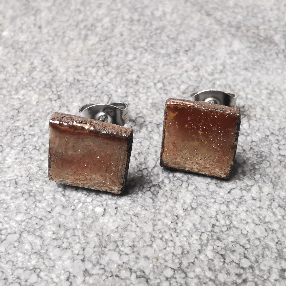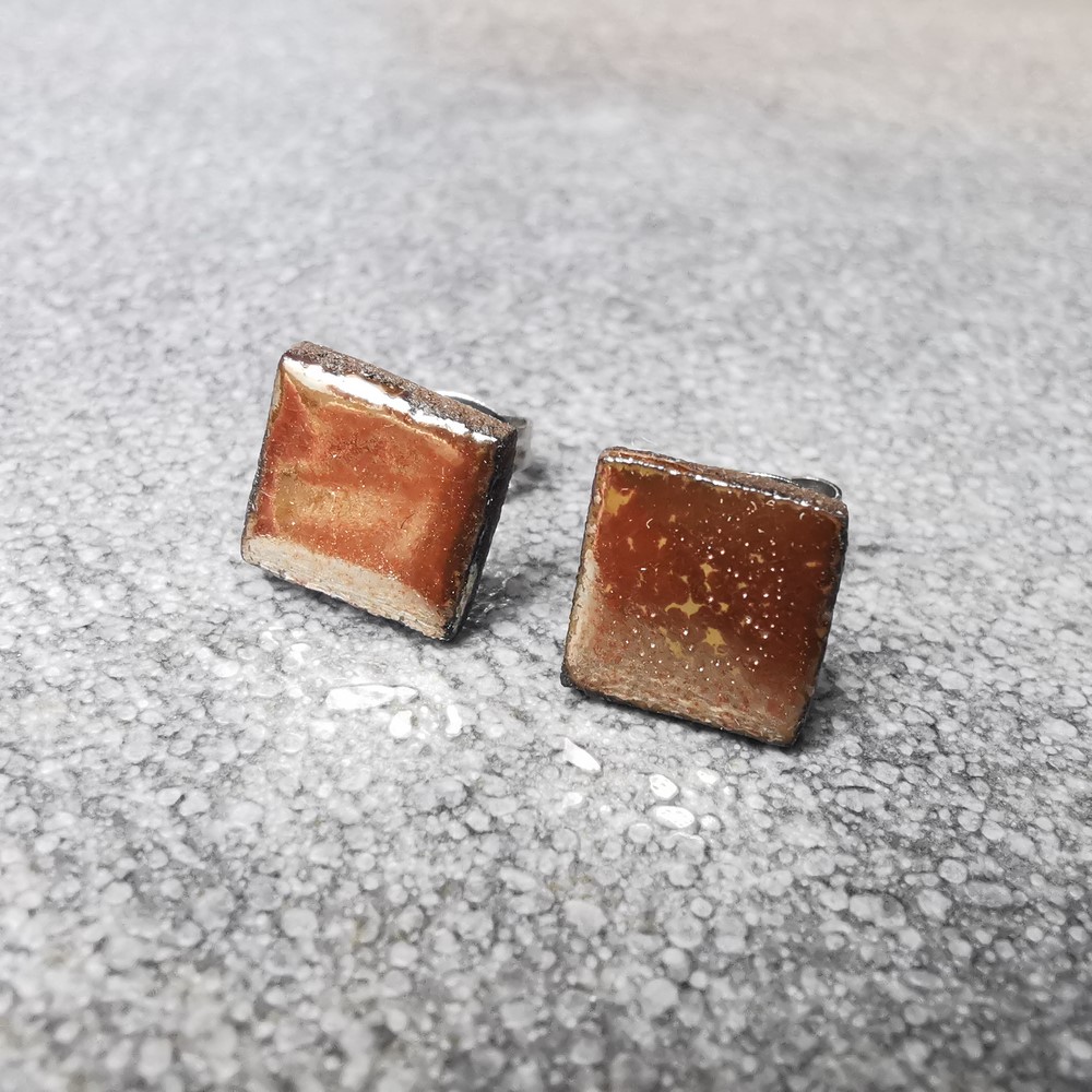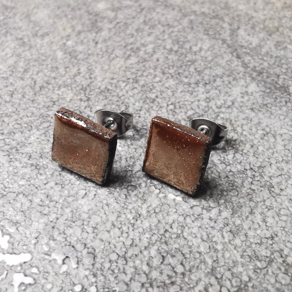 Ceramiczne kolczyki wykonane ręcznie z czekoladowej gliny na sztyftach z antyalergicznej stali chirurgicznej. Lśniąca tafla kolczyków pięknie odbija światło. Będą oryginalnym uzupełnieniem codziennych stylizacji oraz doskonałym pomysłem na prezent.