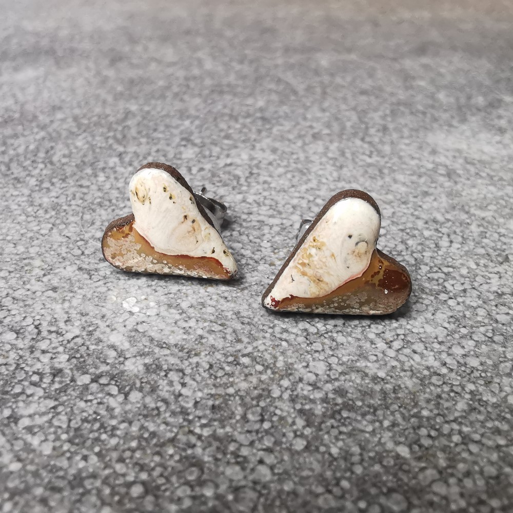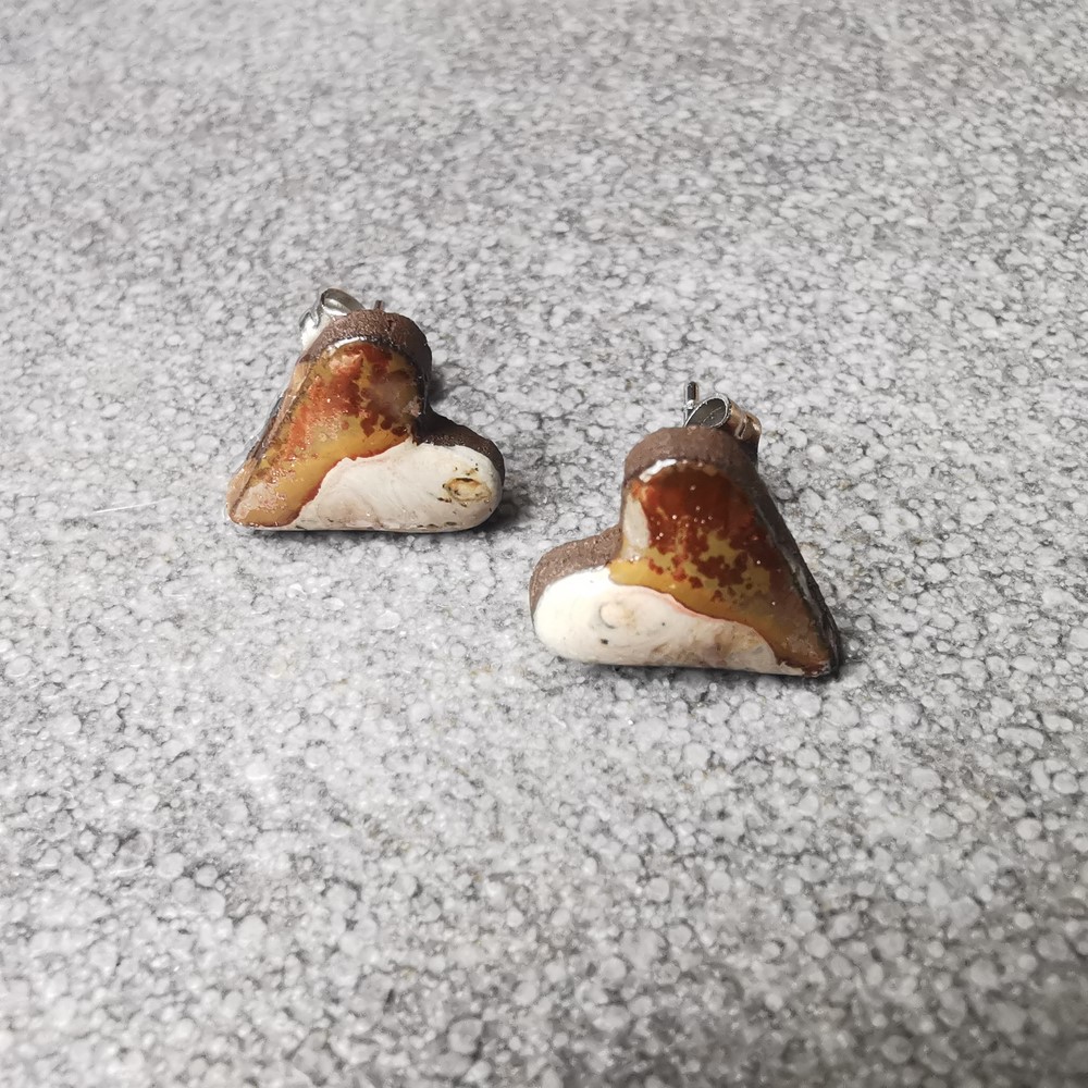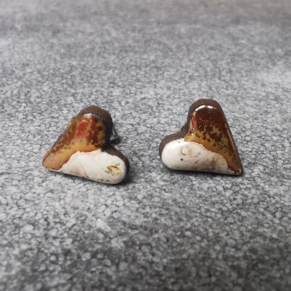 Ceramiczne kolczyki serduszka wykonane ręcznie z czekoladowej gliny na sztyftach z antyalergicznej stali chirurgicznej. Lśniąca tafla kolczyków pięknie odbija światło. Są doskonałą propozycją na oryginalny prezent dla bliskiej osoby.